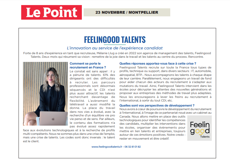 Le monde est en constant changement et une entreprise qui ne s'adapte pas est vouée à sa perte. Ce constat s'observe actuellement avec l'arrivée des nouvelles générations sur le marché du travail. Le cabinet Feelingood Talents met à disposition ses compétences pour accompagner les entreprises dans leur développement.